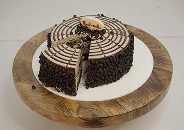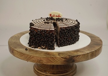Chocolate cake with chocolate chips on it